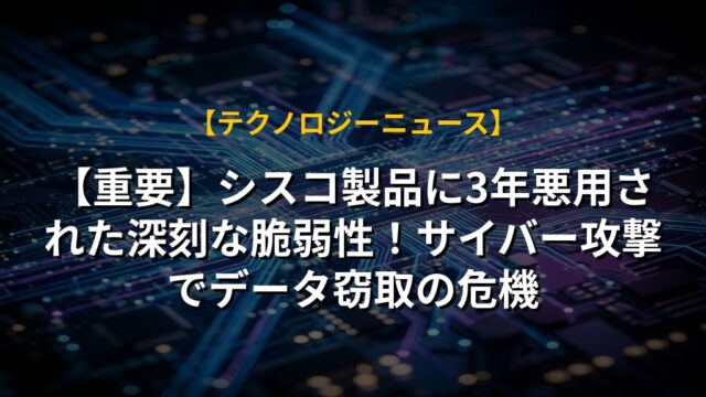【重要】シスコ製品に3年悪用された深刻な脆弱性!サイバー攻撃でデータ窃取の危機