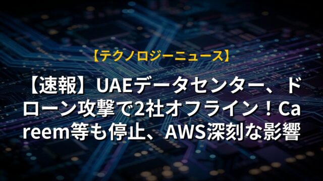 【速報】UAEデータセンター、ドローン攻撃で2社オフライン!Careem等も停止、AWS深刻な影響