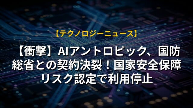 【衝撃】AIアントロピック、国防総省との契約決裂!国家安全保障リスク認定で利用停止