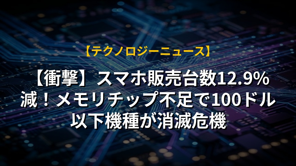 - 2026年のスマートフォン販売台数は、メモリチップ不足により12.9%の大幅減と予測。