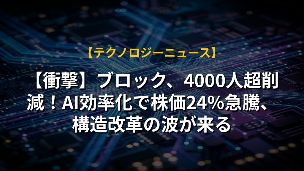 【衝撃】ブロック、4000人超削減!AI効率化で株価24%急騰、構造改革の波が来る