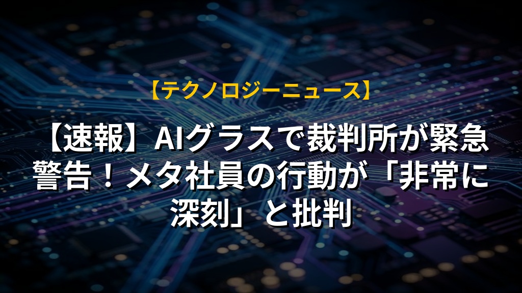 【速報】AIグラスで裁判所が緊急警告!メタ社員の行動が「非常に深刻」と批判