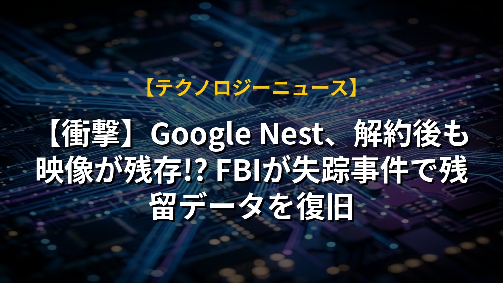 【衝撃】Google Nest、解約後も映像が残存!? FBIが失踪事件で残留データを復旧