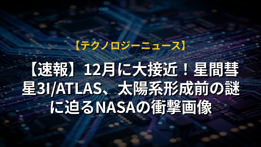 【速報】12月に大接近!星間彗星3I/ATLAS、太陽系形成前の謎に迫るNASAの衝撃画像