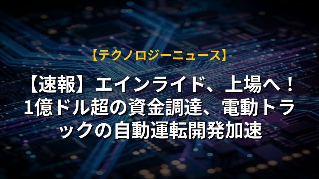 【速報】エインライド、上場へ!1億ドル超の資金調達、電動トラックの自動運転開発加速