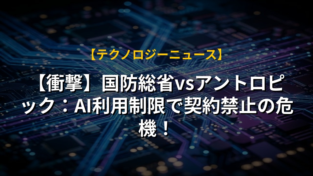 【衝撃】国防総省vsアントロピック:AI利用制限で契約禁止の危機!