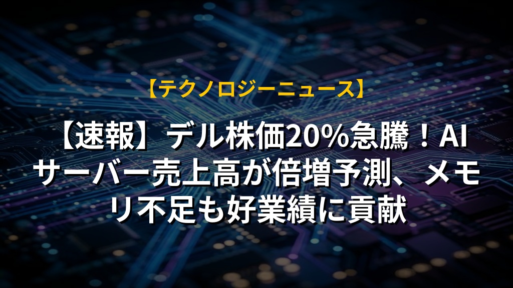 【速報】デル株価20%急騰!AIサーバー売上高が倍増予測、メモリ不足も好業績に貢献