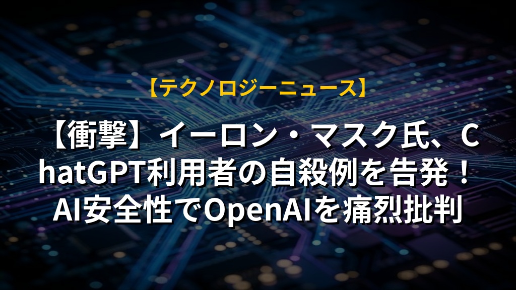 【衝撃】イーロン・マスク氏、ChatGPT利用者の自殺例を告発!AI安全性でOpenAIを痛烈批判