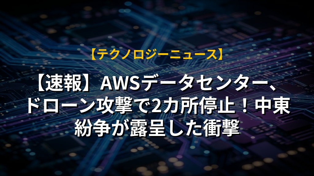 【速報】AWSデータセンター、ドローン攻撃で2カ所停止!中東紛争が露呈した衝撃