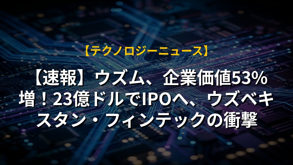 【速報】ウズム、企業価値53%増!23億ドルでIPOへ、ウズベキスタン・フィンテックの衝撃