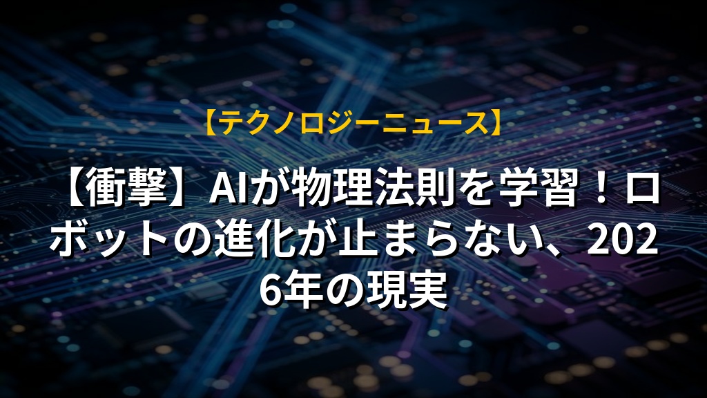 【衝撃】AIが物理法則を学習!ロボットの進化が止まらない、2026年の現実