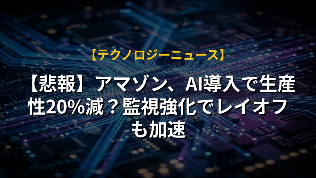 【悲報】アマゾン、AI導入で生産性20%減?監視強化でレイオフも加速