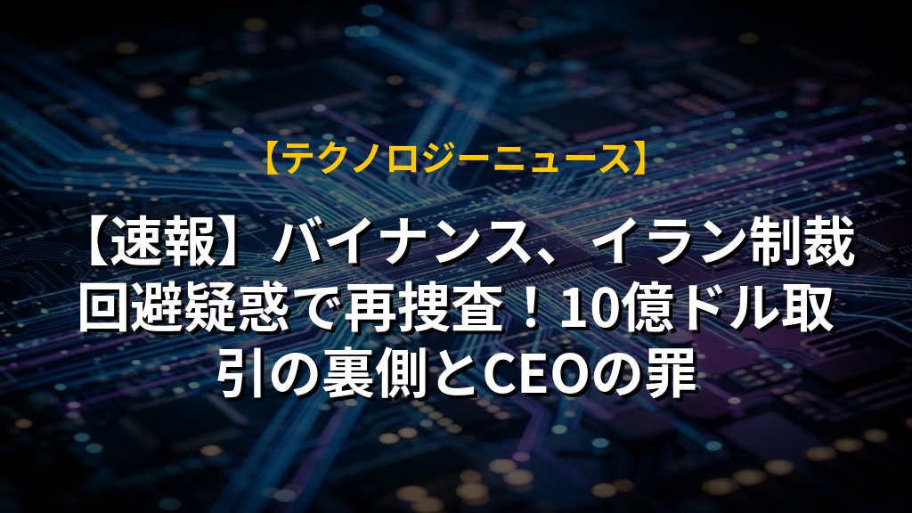 【速報】バイナンス、イラン制裁回避疑惑で再捜査!10億ドル取引の裏側とCEOの罪