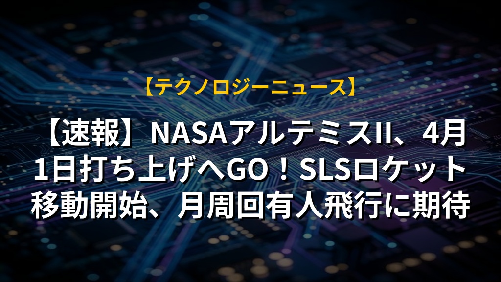 【速報】NASAアルテミスII、4月1日打ち上げへGO!SLSロケット移動開始、月周回有人飛行に期待