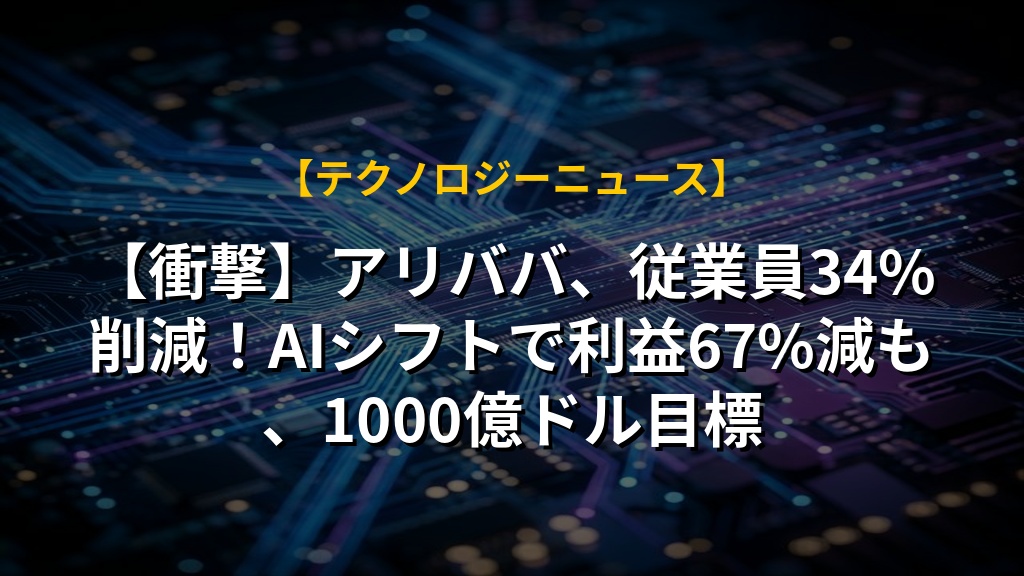 【衝撃】アリババ、従業員34%削減!AIシフトで利益67%減も、1000億ドル目標