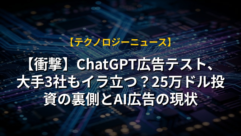 【衝撃】ChatGPT広告テスト、大手3社もイラ立つ?25万ドル投資の裏側とAI広告の現状