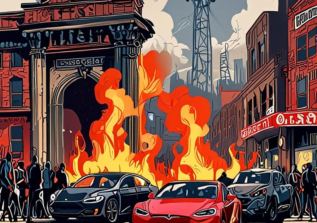 抗議活動では、テスラの看板への落書きや充電ステーションの放火、モロトフカクテルの投擲などが報告されている。