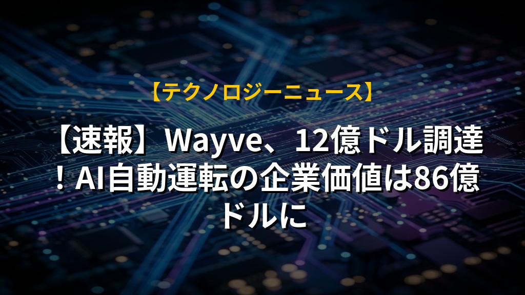 - ウェイブは、12億ドル規模の資金調達を実施し、企業価値が86億ドルに。AI、マイクロソフト、NVIDIA、ウーバーも出資。
