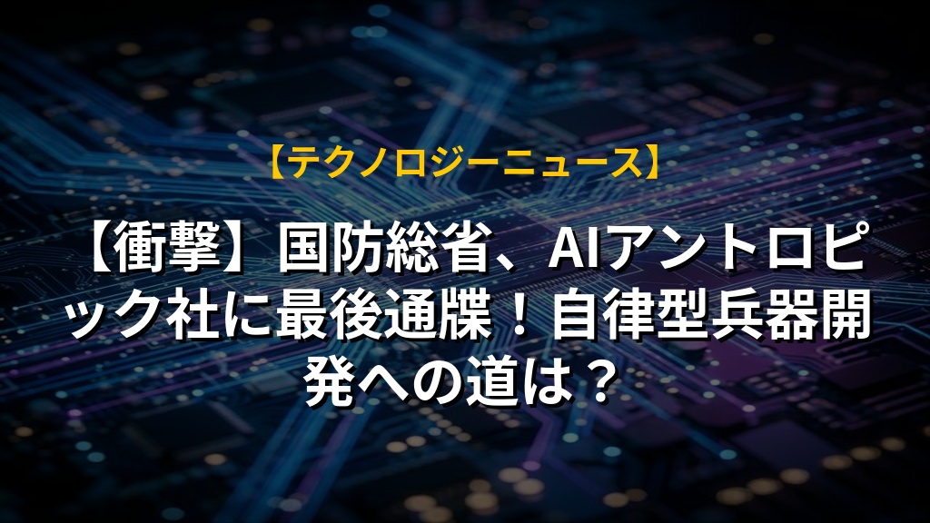 【衝撃】国防総省、AIアントロピック社に最後通牒!自律型兵器開発への道は?