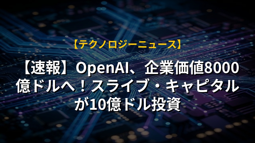 【速報】OpenAI、企業価値8000億ドルへ!スライブ・キャピタルが10億ドル投資