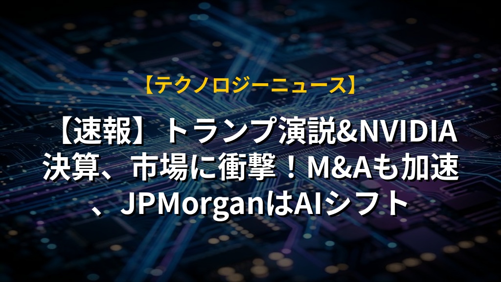 【速報】トランプ演説&NVIDIA決算、市場に衝撃!M&Aも加速、JPMorganはAIシフト