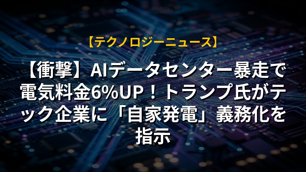 【衝撃】AIデータセンター暴走で電気料金6%UP!トランプ氏がテック企業に「自家発電」義務化を指示