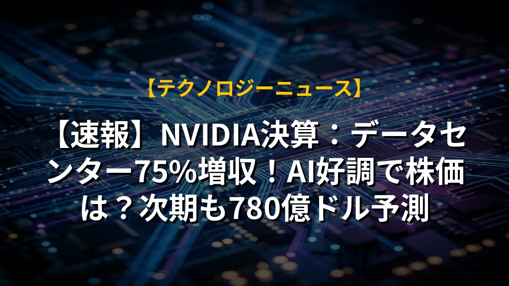 【速報】NVIDIA決算:データセンター75%増収!AI好調で株価は?次期も780億ドル予測