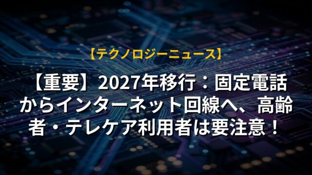 【重要】2027年移行:固定電話からインターネット回線へ、高齢者・テレケア利用者は要注意!