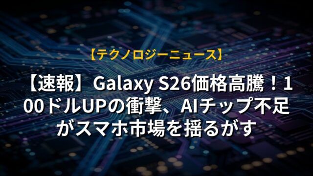 【速報】Galaxy S26価格高騰!100ドルUPの衝撃、AIチップ不足がスマホ市場を揺るがす