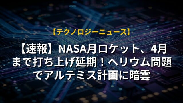 【速報】NASA月ロケット、4月まで打ち上げ延期!ヘリウム問題でアルテミス計画に暗雲