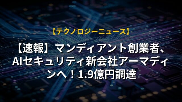 【速報】マンディアント創業者、AIセキュリティ新会社アーマディンへ!1.9億円調達