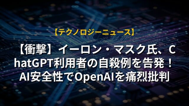 【衝撃】イーロン・マスク氏、ChatGPT利用者の自殺例を告発!AI安全性でOpenAIを痛烈批判
