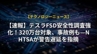 【速報】テスラFSD安全性調査強化!320万台対象、事故例も—NHTSAが警告遅延を指摘