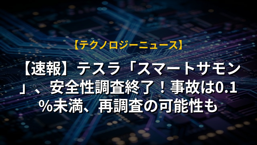 テスラ社の「アクチュアリー・スマート・サモン」調査終結は、自動運転技術の安全性評価における重要な転換点となります。