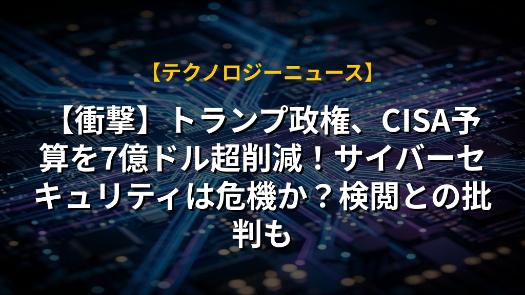 【衝撃】トランプ政権、CISA予算を7億ドル超削減!サイバーセキュリティは危機か?検閲との批判も