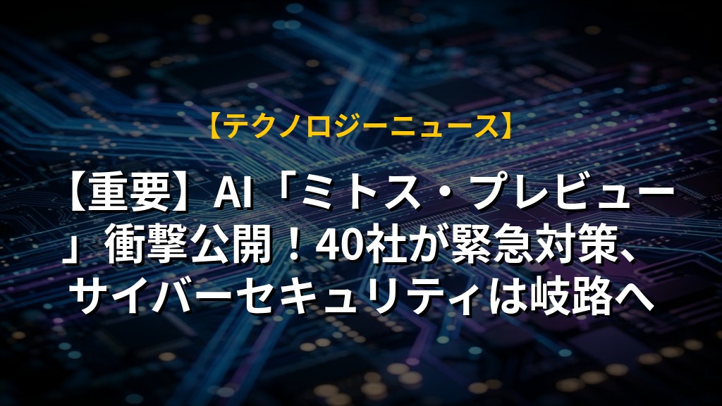 【重要】AI「ミトス・プレビュー」衝撃公開!40社が緊急対策、サイバーセキュリティは岐路への注目ポイントまとめ