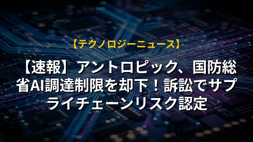 【速報】アントロピック、国防総省AI調達制限を却下!訴訟でサプライチェーンリスク認定の注目ポイントまとめ