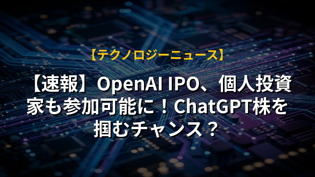 【速報】OpenAI IPO、個人投資家も参加可能に!ChatGPT株を掴むチャンス?