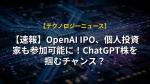 【速報】OpenAI IPO、個人投資家も参加可能に!SpaceX超えも視野?
