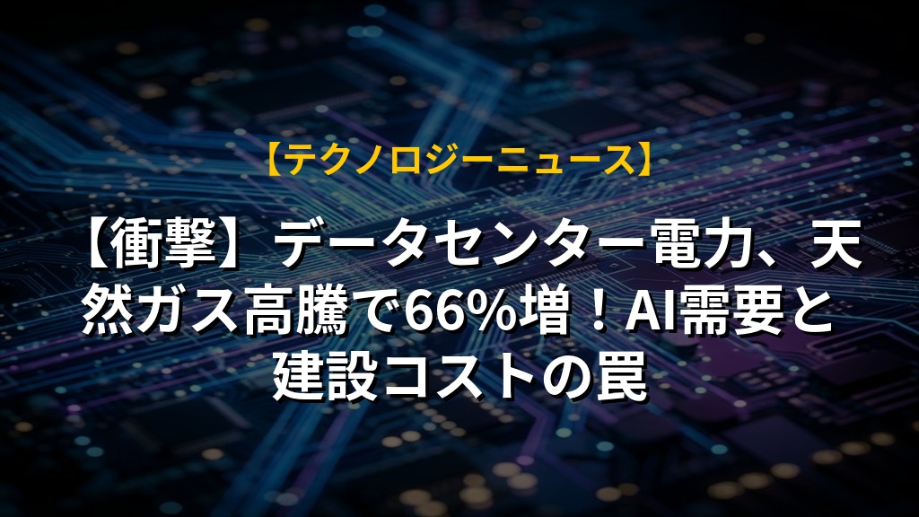 【衝撃】データセンター電力、天然ガス高騰で66%増!AI需要と建設コストの罠の注目ポイントまとめ