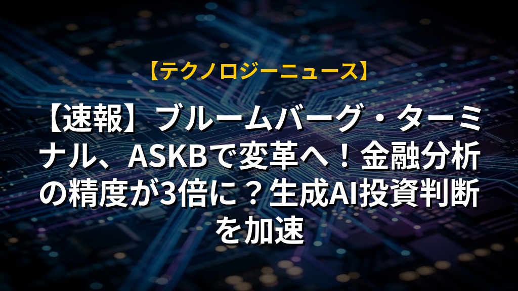 【速報】ブルームバーグ・ターミナル、ASKBで変革へ!金融分析の精度が3倍に?生成AI投資判断を加速