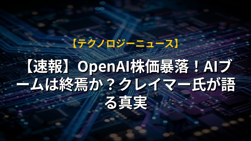 【速報】OpenAI株価暴落!AIブームは終焉か?クレイマー氏が語る真実