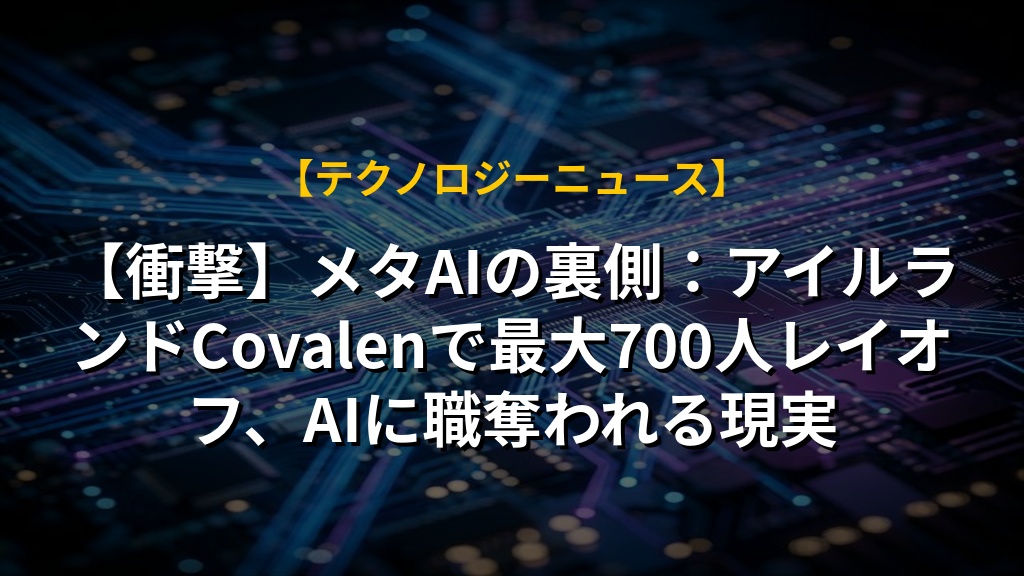 【衝撃】メタAIの裏側:アイルランドCovalenで最大700人レイオフ、AIに職奪われる現実