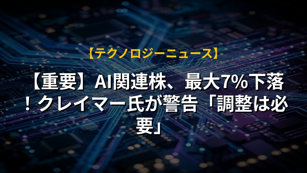 【重要】AI関連株、最大7%下落!クレイマー氏が警告「調整は必要」の注目ポイントまとめ