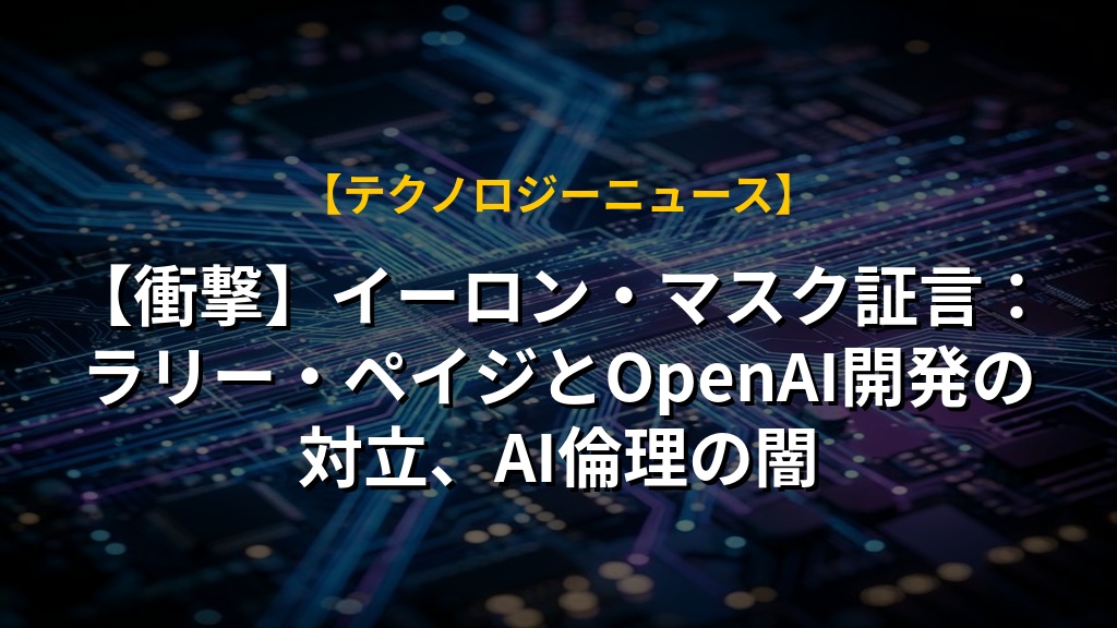 【衝撃】イーロン・マスク証言:ラリー・ペイジとOpenAI開発の対立、AI倫理の闇