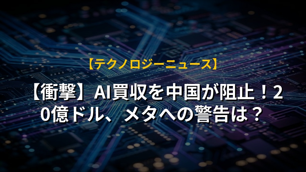 【衝撃】AI買収を中国が阻止!20億ドル、メタへの警告は?