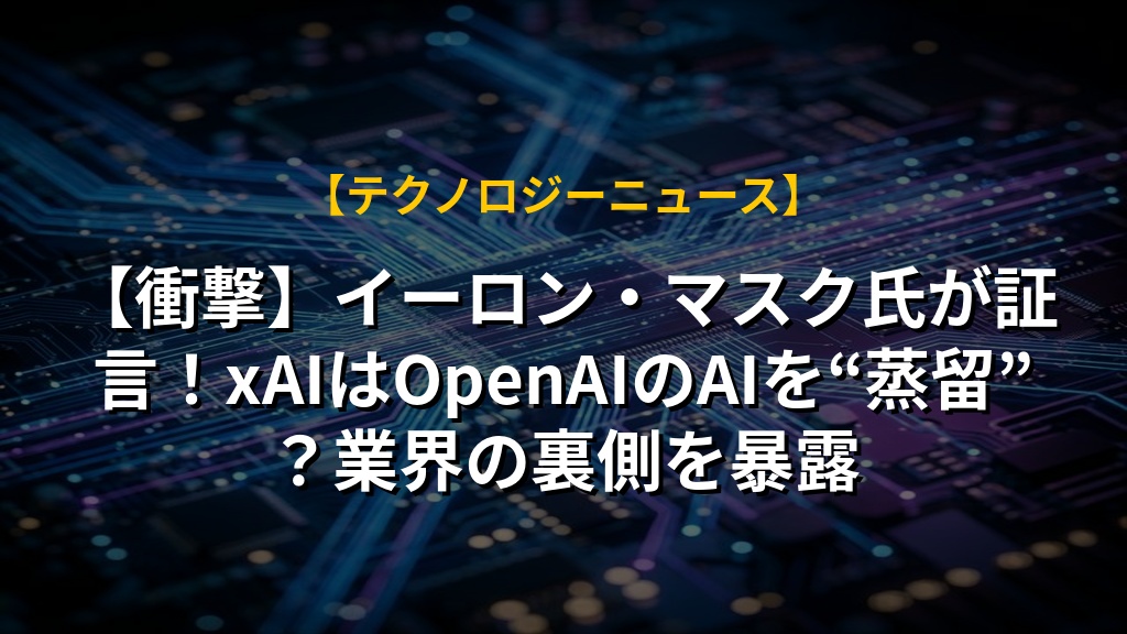 【衝撃】イーロン・マスク氏が証言!xAIはOpenAIのAIを“蒸留”?業界の裏側を暴露