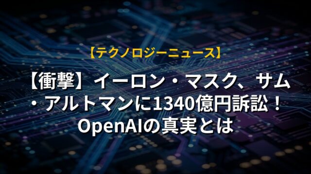 【衝撃】イーロン・マスク、サム・アルトマンに1340億円訴訟!OpenAIの真実とは