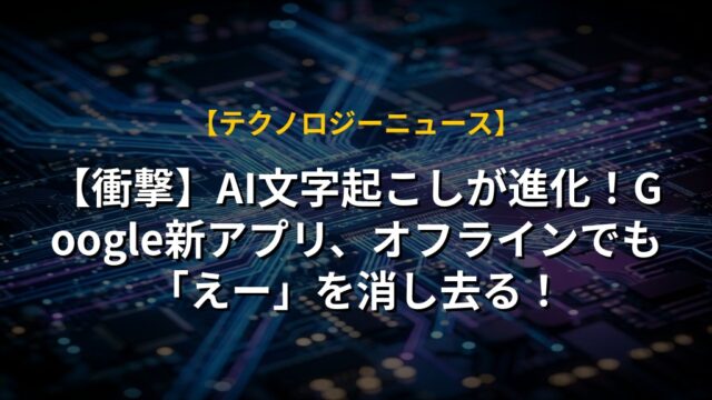 【衝撃】AI文字起こしが進化!Google新アプリ、オフラインでも「えー」を消し去る!