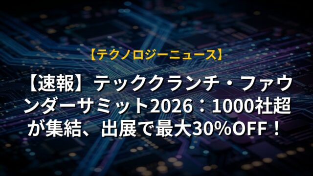 【速報】テッククランチ・ファウンダーサミット2026:1000社超が集結、出展で最大30%OFF!